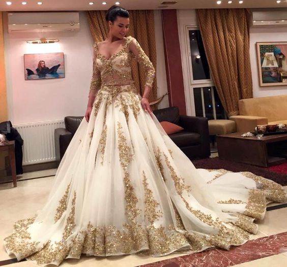 Wedding dresses,a-line wedding dresses,gold lace wedding dress,long sleeve bridal gown,gorgeous wedding dresses, 155