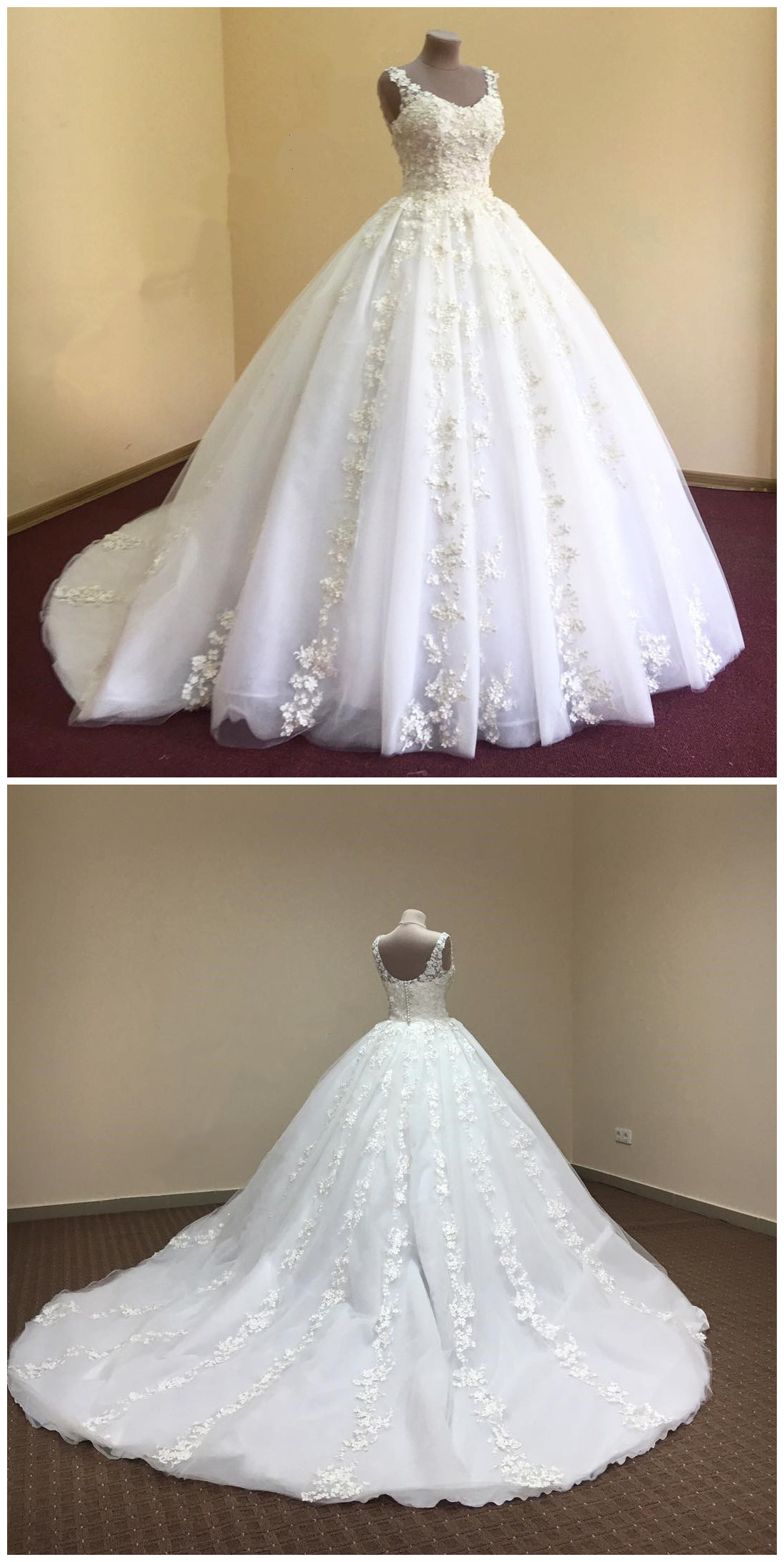Sleeveless 3D Floral Embellished Princess Wedding Ball Gown with Chapel Train, 258