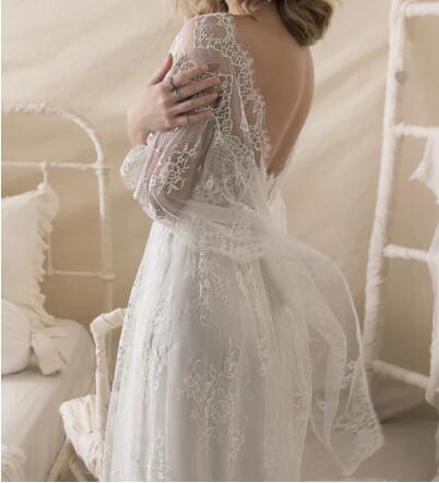 A line Half Sleeves Lace Boho Wedding Dress,566