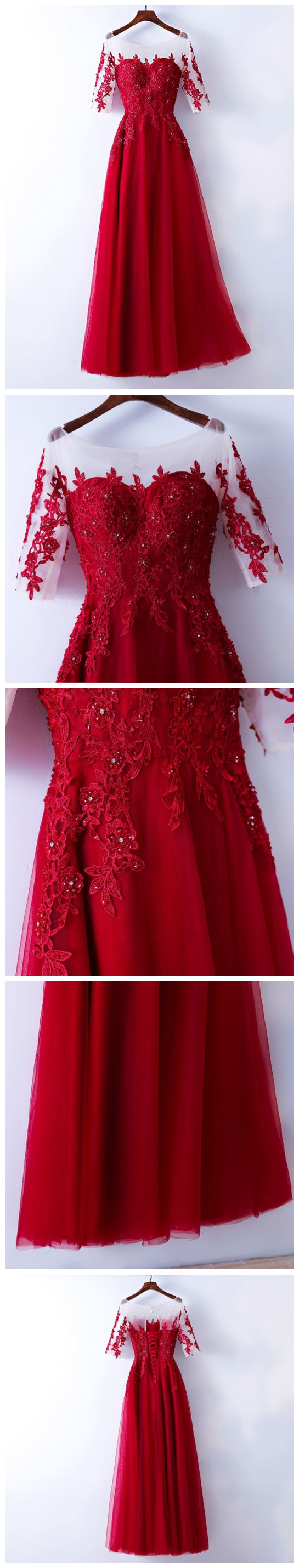 Red Prom Dress with Sleeves,Prom Dresses,Evening Gown, Graduation Party Dresses, Prom Dresses For Teens, 521