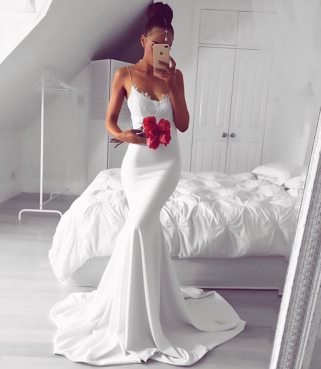 Elegant Mermaid White Long Evening Dress,Elegant Prom Dresses,545