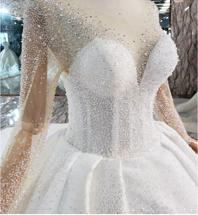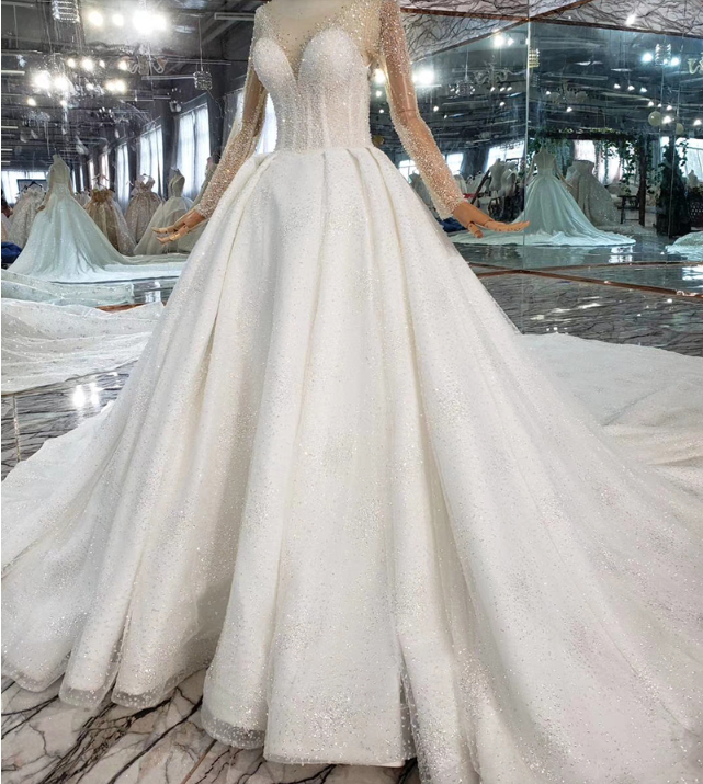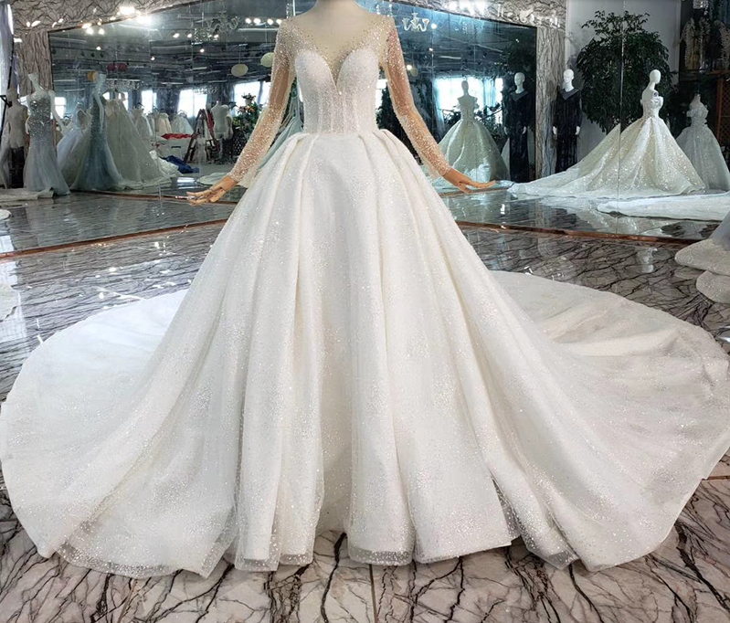 western wedding dresses with train, illusion long sleeves crystal bridal dress up wedding gowns new fashion robe de mariee, 033