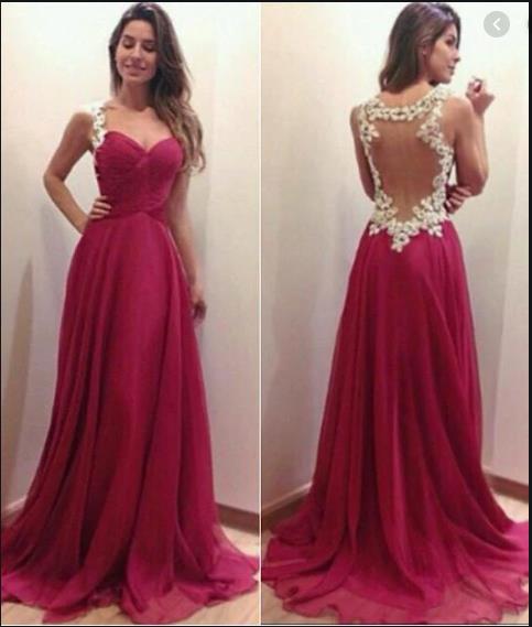 A-line Sweetheart Red Chiffon Long Prom Dresses, Evening Dresses, 115