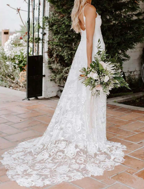 Rose Lace Sweetheart Boho Wedding Dresses Spaghetti Strap Beach Wedding Dresses, 162