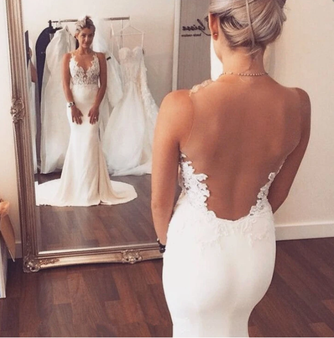 Charming Mermaid Wedding Dresses,Long See Through Wedding Dresses,Wedding Dresses, 173
