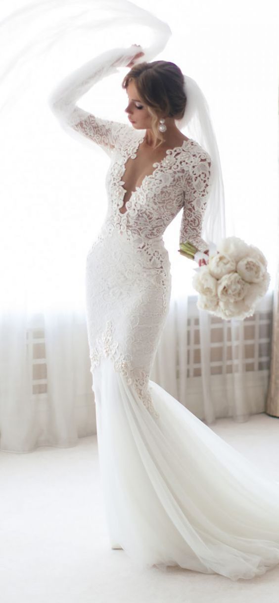 Mermaid Sheer Long Sleeve Lace Wedding Dresses Sheer Neckline Bridal Gowns, 183
