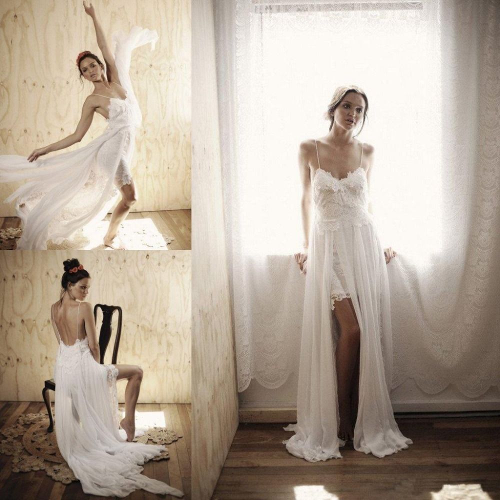 2020 Modern Boho Beach Wedding Dress, Spaghetti straps Backelss Chiffon Lace Bridal Gown, 192