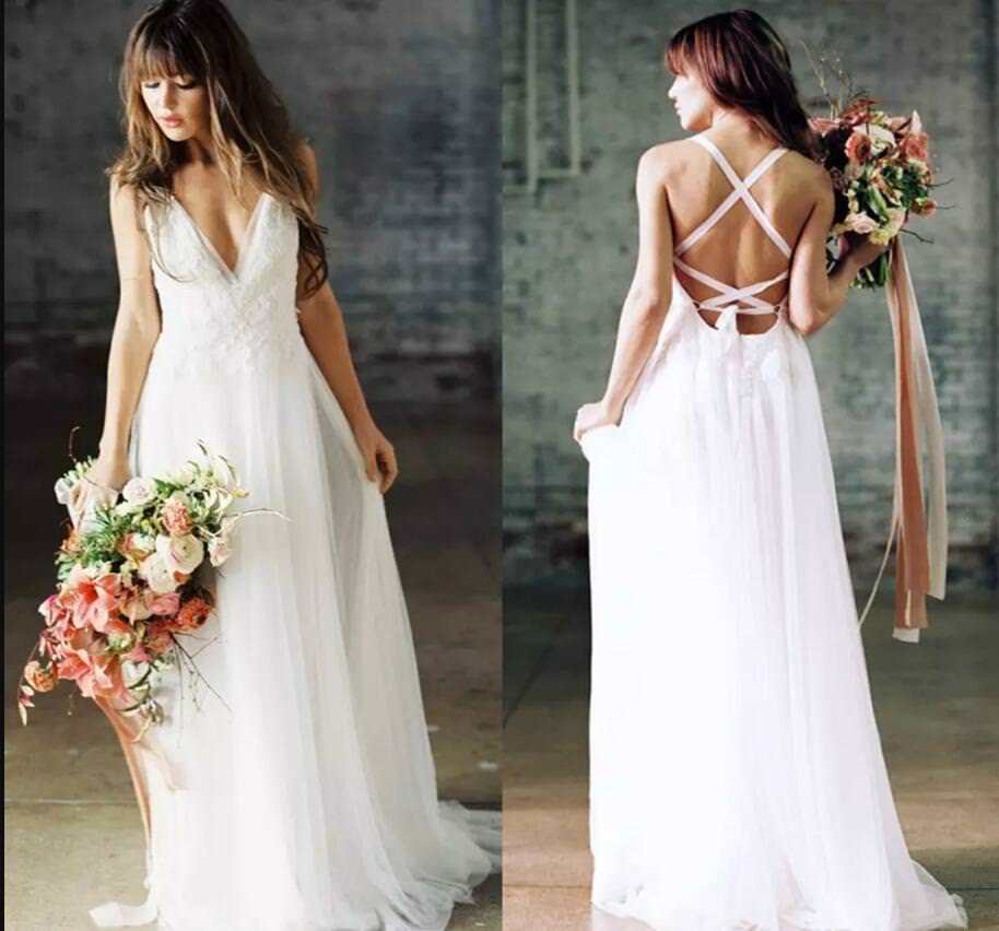 2019 Boho Wedding Dress, Sexy Beach Wedding Dress, Chiffon V Neck Floor Length Beach Bridal Gown, 197