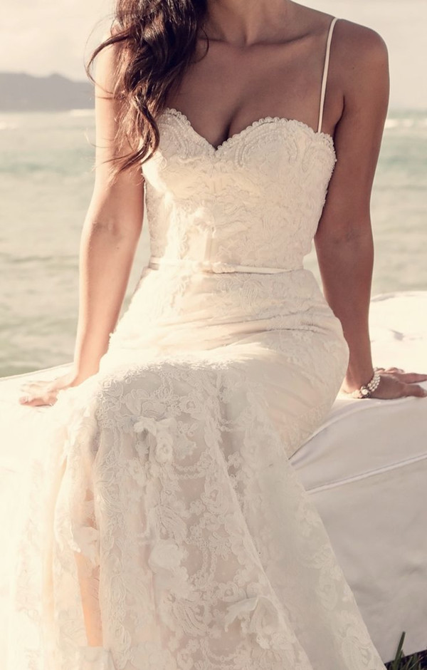 Beach Lace Wedding Dresses Romantic Mermaid Spaghetti Straps White Summer Wedding Gowns, 205