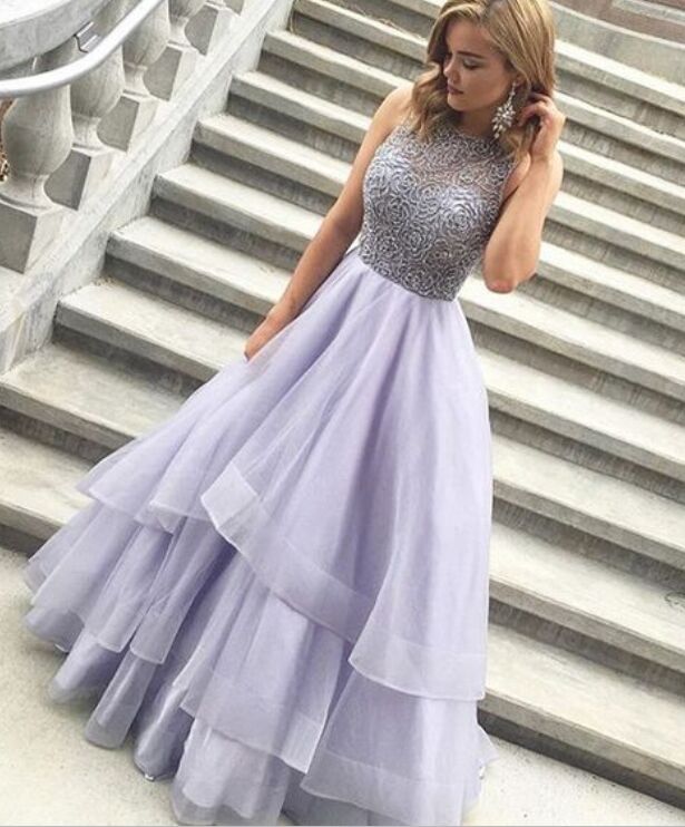 Sparkly Long Lavender Beaded Prom Dresses For Teens,Handmade Pretty Prom Gowns,Modest Party Dresses,Evening Dresses, 209
