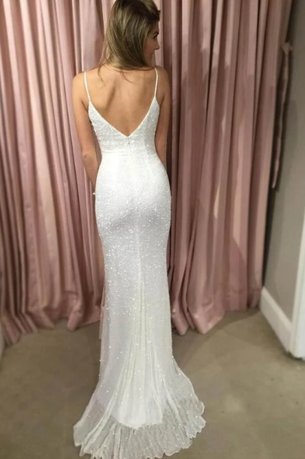 Sexy Mermaid Spaghetti Straps Sequins V Neck Prom Dresses, Wedding Dresses, 236