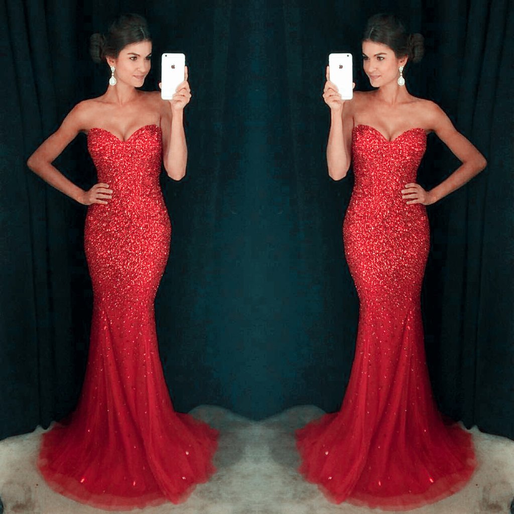 Stunning Red Off the Shoulder Beading Mermaid Prom Dress, Prom Dresses, Evening Party Gown, 306