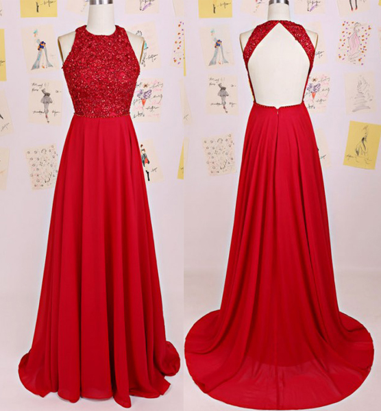 2020 Pretty Red Open Back Long Chiffon Prom Dresses,High Low Simple Cheap Evening Dresses For Teens, 344