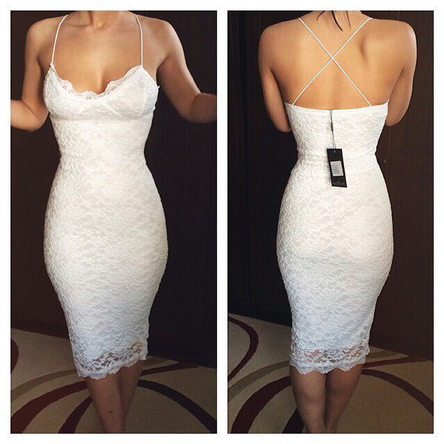 Sexy White Lace Sheath Spaghetti Straps Short Party Dress With Cross Back, 406
