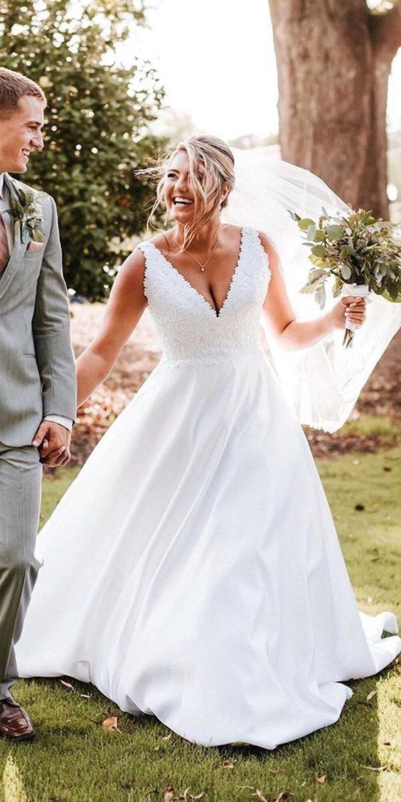 Plus Size Ball Gown Wedding Dresses Garden V Neck Lace Bridal Gowns, 453