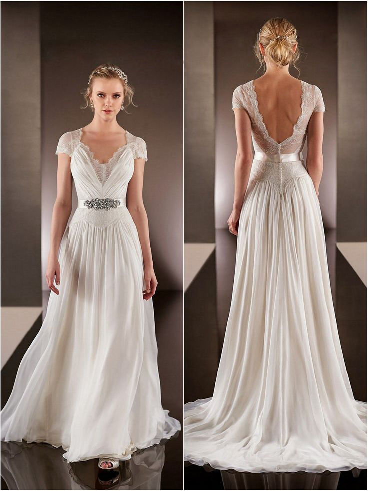 Modest Chiffon Low Back Wedding Gowns, Short Sleeves Simple Wedding Dress, 468